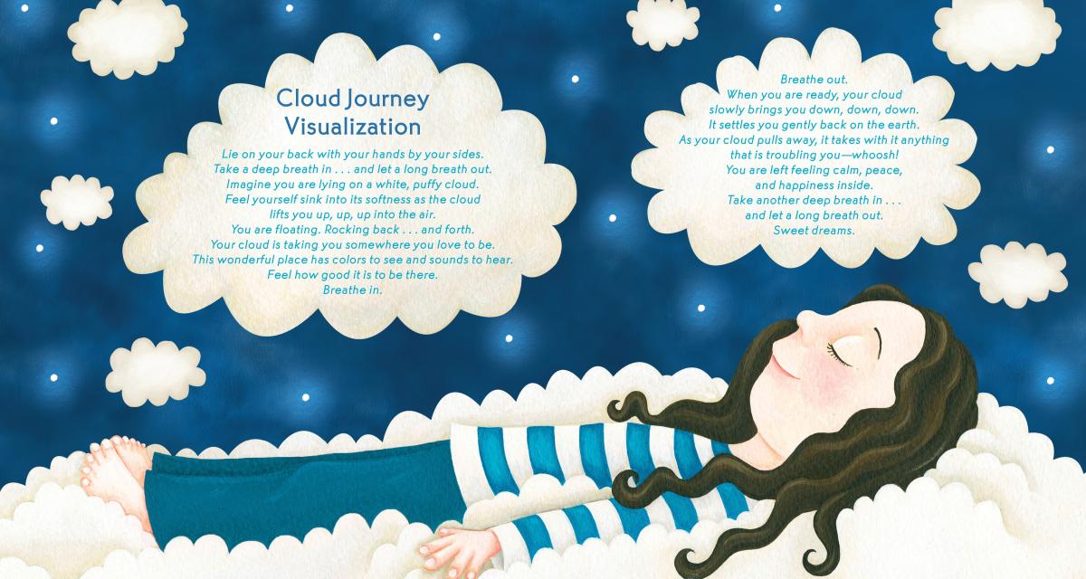 When I added the Cloud Journey Visualization, it brought a whole new dimension. With a relaxed mind and body, she could be still and use the visualization to self-soothe and further release any tension that might get in the way of falling asleep. (She is now 13 and on occasion, when middle school life is feeling very full, I’ll still read her the Cloud Journey Visualization to help her get back to that calm release inside).