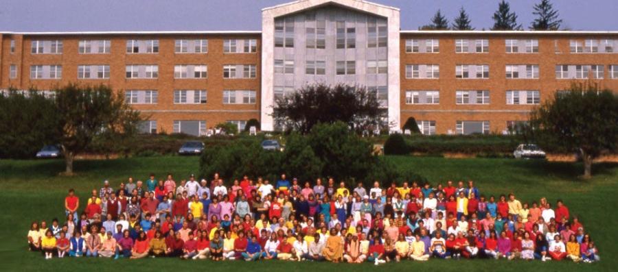 Once the sale had gone through, a crew of 50 people from Kripalu’s Pennsylvania community—which then numbered about 150—moved into the building and began a massive renovation that included re-insulating, putting in a waste-water treatment system, laying down two acres of carpet, painting seven acres of wall space, repairing 694 windows, and removing rows of pews from what is now the Main Hall. Eventually the rest of the Pennsylvania group followed, along with truck after truck containing all of the community’s belongings.