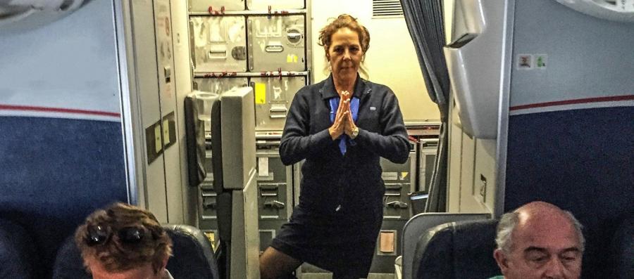 Amy suggests quick yoga interventions, which can be done in your seat.