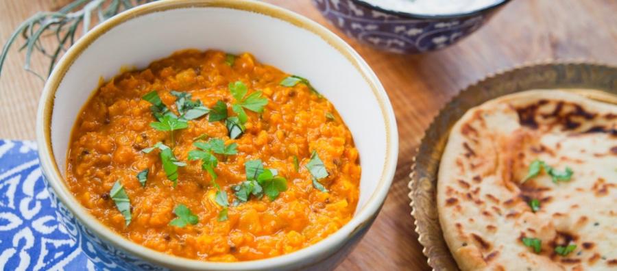 This dish offers a smorgasbord of anti-inflammatory and detoxifying herbs and spices, including ginger, turmeric, coriander, mustard seeds, and asafetida. It’s particularly satisfying due to the sustaining combination of fiber-rich carbohydrates and high-quality protein in the red lentils. It also packs in B-vitamins such as thiamin (good for the nervous system), choline (essential for neurological function), and folate (critical for cell replication and the health of our DNA).