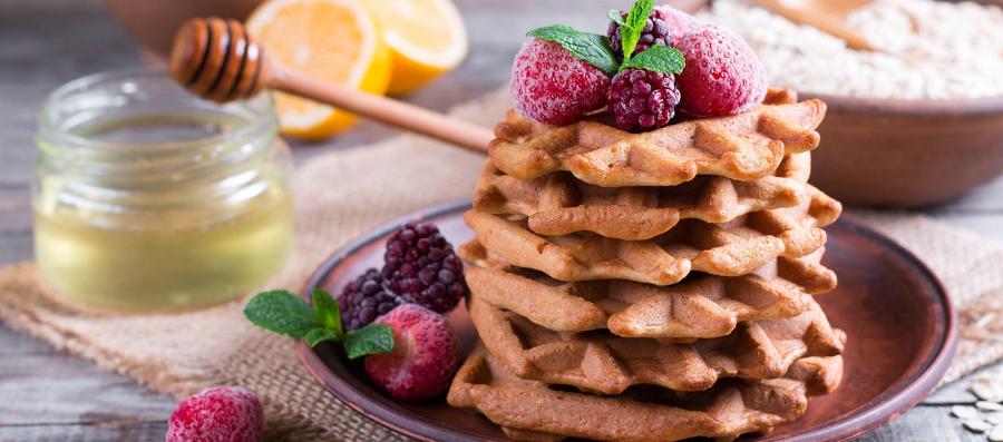 This recipe uses oat flour, which makes a surprisingly light, airy waffle or pancake. You can use packaged oat flour, or make your own by using a coffee grinder or food processor to grind rolled oats to a fine powder. This is an excellent breakfast or snack option for those who are intolerant of wheat or dairy.