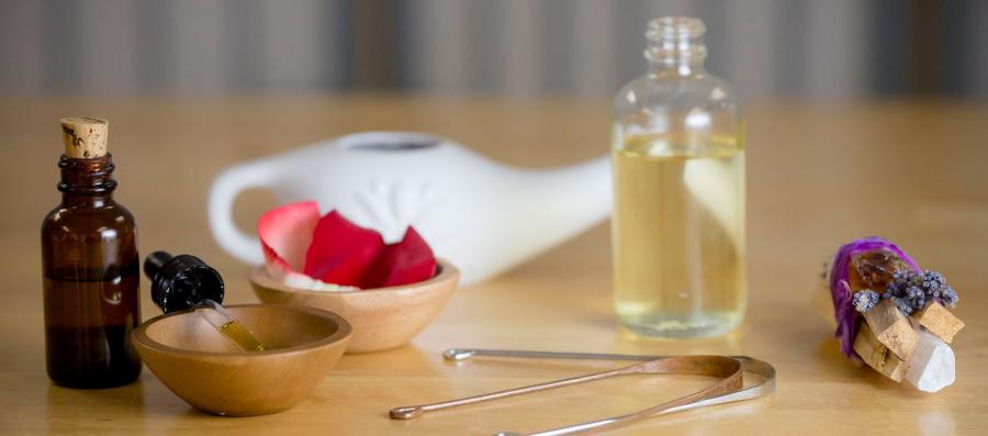 To do nasya, place some oil on your pinkie finger and apply it in one nostril, or administer the oil with a dropper or a squirt bottle. Recline your head slightly back and sniff the oil up into your nose—ideally until you feel it drip into the back of your throat. Repeat on the other side.
