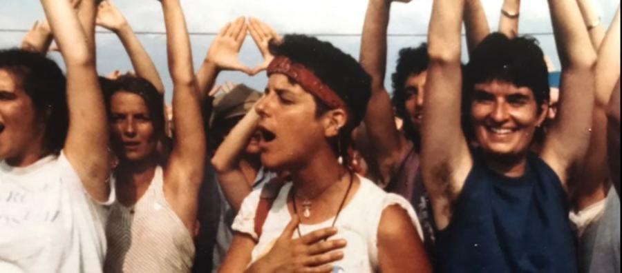 I believed that matriarchy was our only hope for saving the planet. I attended women’s-only conferences, was part of a Jewish lesbian political group, listened exclusively to women-made music, attended women-only dances, and felt smugly and positively assured about my choices. (That's me with my hand on my heart in the photo above, at the Women's Peace Camp in Seneca, New York, in 1983, during a protest at the Seneca Army Depot.)