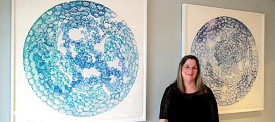 Lori’s art reflects yoga philosophy—she’s been coming to Kripalu for many years, and her husband, David Schouela, is a Kripalu Yoga teacher—and her view of spirituality as a deep connection with something larger than ourselves.