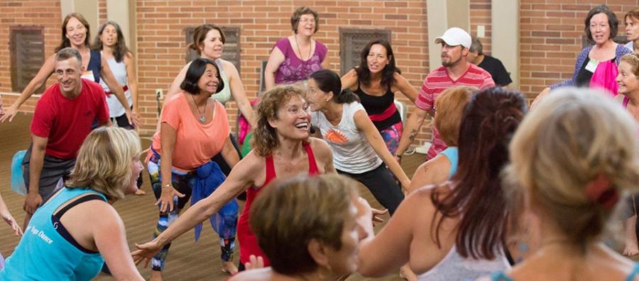 Students with physical challenges can participate, because Let Your Yoga Dance can be practiced balancing on or sitting in a chair. Since 2007, Megha has been teaching the form to people suffering from Parkinson’s disease. “Some of them say, ‘Let Your Yoga Dance is like a drug for Parkinson’s, but the only side effect is joy!’” she exclaims. In Kripalu’s Certificate in Positive Psychology program over the last several years, Megha taught students how to embody character strengths like gratitude, love, humor, and creativity, using Let Your Yoga Dance as a tool. She describes the many layers of Let Your Yoga Dance and how it relates to Positive Psychology in her book, Expanding Joy.