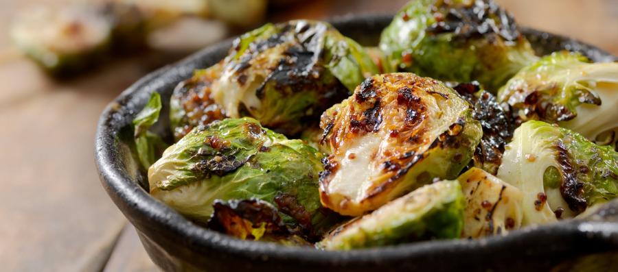 Kripalu Recipe: Caramelized Brussels Sprouts with Kimchi Sauce