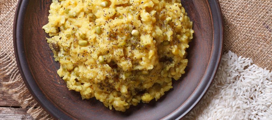 Mung dal beans are high in protein and carbohydrates, offering satiety and energy. Protein is important for keeping the blood sugar, and therefore the mood, stable. Basmati rice is easy to digest, and the spice "churna," or mixture, sparks our agni, or digestive fire. The ghee (or oil) lubricates the system and further aids in digestion. You can add seasonal vegetables to the recipe for variety and to boost the vitamin and mineral content of the dish.