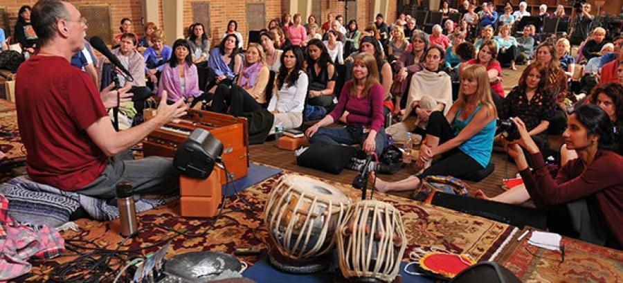 Like other forms of yoga, kirtan is best understood through direct experience. People often say they feel bliss or "buzzed" after chanting. Justin Green, a member of KDZ: The Kripalu Drummers, says, "I get so joyful, really blissfully happy, because it changes something. It opens me up. I think there is something inherently hypnotic about sharing voice, sharing breath, and moving, if we happen to be dancing. I think it breeds a sense of connection. It’s like praying together." Justin adds, "At first I thought, ’What is this ridiculous stuff?’ I had a lot of resistance to it, but after the first one I was high. Then, I was hooked."