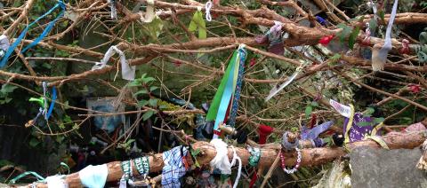 “As I enter [the grotto], it’s dark and uninviting—and cold,” wrote blogger Anonymous Pilgrim of her visit there. “There is the smell of dampness—a penitential feel. But I see the walls are dripping with prayer: petitions for the sick, expressions of thanksgiving, sorrow, grief, and hope. It has a mysterious atmosphere as the sun begins to fall low in the sky.”