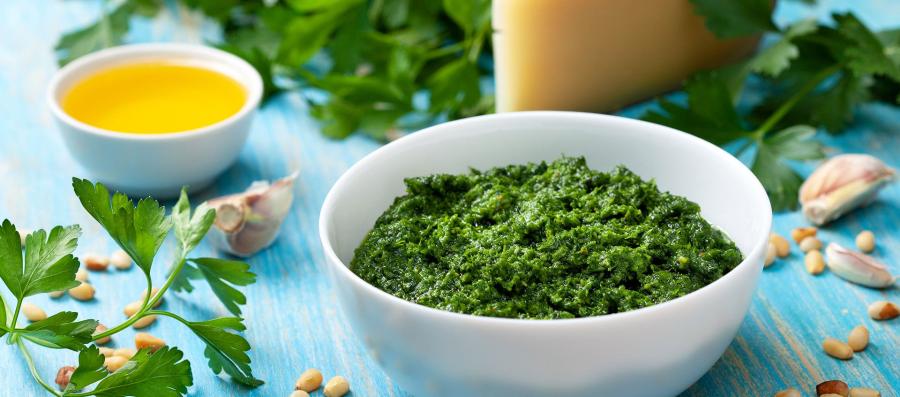 Toast nuts or seeds in a pan over low heat, or in the microwave. If microwaving, start with 45 seconds and check if they're done. Put toasted nuts or seeds and the remaining ingredients in a food processor or blender, and mix until it is a uniform consistency. Now taste it. Do you love it as is, or can you perfect it a bit? This is where the art of cooking comes in, and you are the artist. Would you like to add some grated Parmesan or Romano cheese? Go for it; you’ll probably need to add more oil to keep the proper consistency. Does it need more garlic or more lemon? Remember, a recipe is only a suggestion. Use what you have on hand, and play with your food so that it tastes absolutely scrumptious to you.