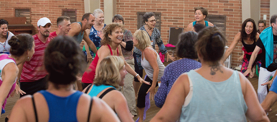 “When you let your yoga dance, you bring endorphins to the brain and joy to the spirit,” she says. “In most yoga classes, you find yourself staring at someone’s back in front of you. In Let Your Yoga Dance, we’re looking into one another’s eyes. Suddenly, people’s issues become secondary. Their hearts and souls become primary. We become a community.”