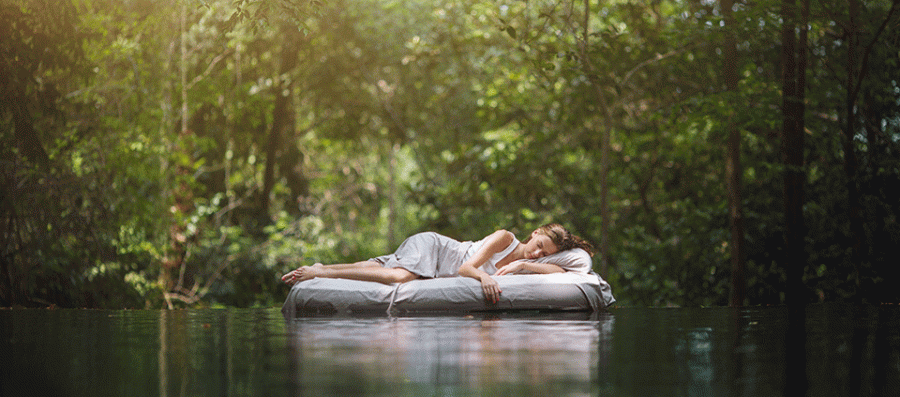 - Try yoga nidra. It’s a comprehensive practice done lying down, and can take you far beyond deep relaxation and mindfulness, to a place of peace and quiet that is tremendously restful. A special type of meditation that increases uplifting levels of awareness, it can also be practiced at bedtime as a sleep aid. It clears out layers of stress so they don’t follow you to bed and disturb sleeping. In fact, researchers say that one hour of yoga nidra practice, while not a substitute for actual sleep, is equivalent to four hours of sleep. This is due to the types of brain waves experienced along the way. Proven relaxation skills, specialized breathing techniques, guided imagery, and mindfulness are systematically used. You can download a recording to your listening device, put it on airplane mode, and listen by putting the ear buds or the device itself under your pillow. It will transmit right through your pillow and not disturb your sleep partner, if you have one.