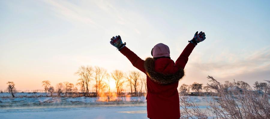 There were also opportunities for introspection and reflection. I walked outside one evening looking for solitude, silence, and fresh air. The crisp breeze contrasted with the warmth of the lobby. The orange and pink rays of the sun reflected on the fluffy snow. I walked down the stairs, off the sidewalk, and onto the frosted grass. The snow on the ground looked as if it had been evened out with a giant spatula. As I wandered, snowflakes shifted, leaving a soft trail of my footsteps. My thoughts came and went like dandelion puffs in the wind. It was me and the snow, the three small birds holding on to a branch, the scent of the faraway hickory bonfire, the reflection of the orange sun … and I inhaled.