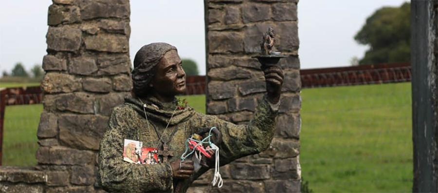 I’d heard about the many wells devoted to Brigid on previous trips to Ireland. I’d pictured a modest hole, a bucket attached to a rope. You throw a coin. You take care not to topple in. But this particular Brigid’s Well was a mystical graveyard and grotto combined: headstones among trees and the sound of running water inside a small white cavern. Everywhere, visitors had left mementoes—bits of ribbon tied to branches, photos and messages tucked into crevices.