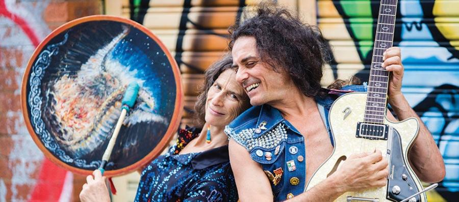 Our Forrest Yoga ceremonies are raw, rich, and primal. Jose and I weave together a powerful, beauty-filled experience from our mutual years of studying and practicing as healers, [drawing from] indigenous culture and love of nature. We use the ancient spiritual technology of “singing into the bones.” We use breath and intent to quest into the mystery inside, for the next level of healing and learning. That kind of empowering is tremendously fun!
